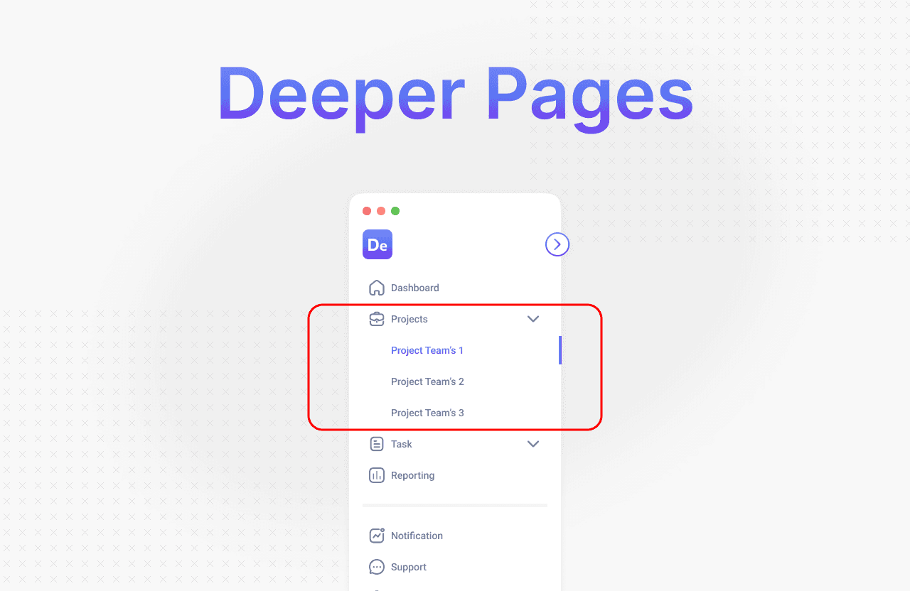 For applications with many pages or deep hierarchies, the sidebar should support nested navigation.